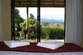 Two luxurious timber chalets situated on the edge of a deep valley overlooking the treetops to the Outeniqua Mountains beyond. Relaxed comfort in a peaceful & private environment.